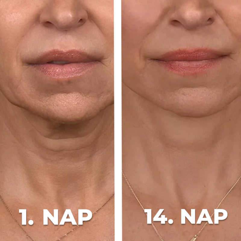 Finoman vezesd végig a feszesítő készüléket felfelé és kifelé irányuló mozdulatokkal. Használd az arcodon napi 5 percig.