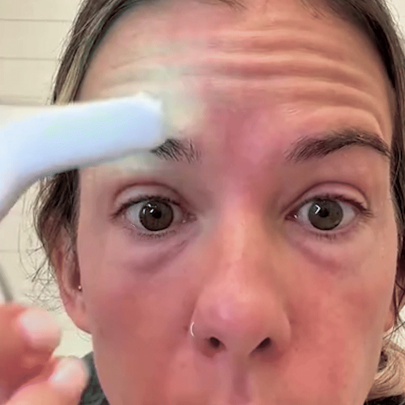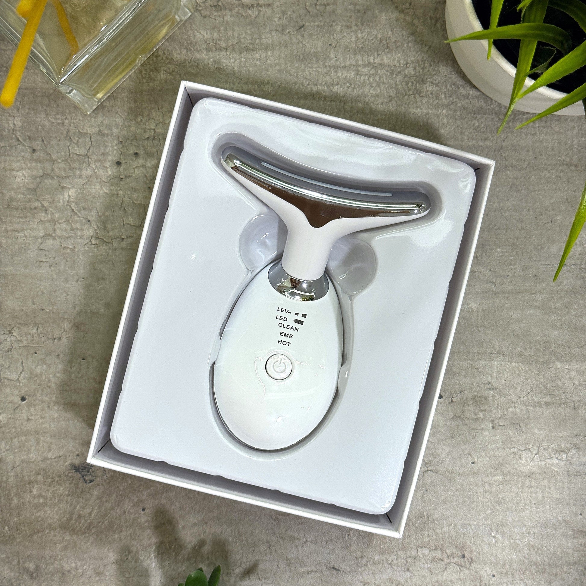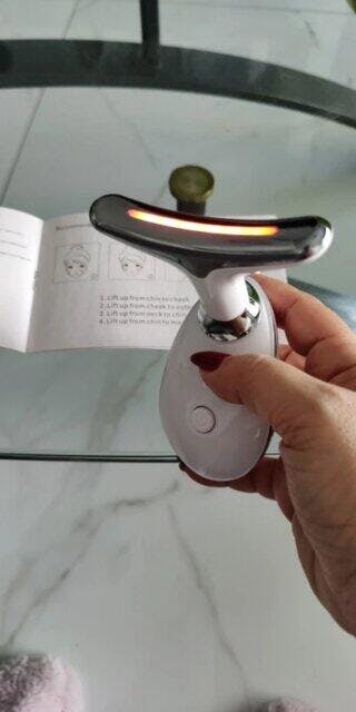 Finoman vezesd végig a feszesítő készüléket felfelé és kifelé irányuló mozdulatokkal. Használd az arcodon napi 5 percig.
